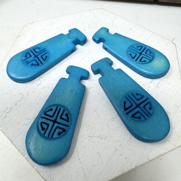 Bone Beads Pendants Turquoise Asian Cut Out Design 4 PC 42 x 17 mm