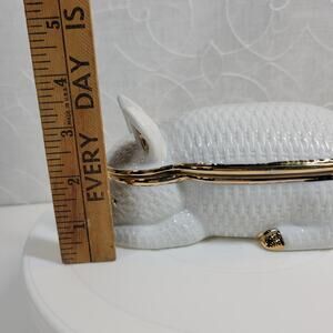Bone China Porcelain Pig Hinged Trinket Jewelry Box w/ 18k Gold Accent
