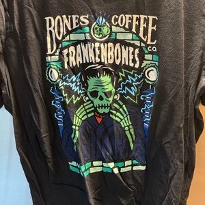 Bold black tee with Frankenbones graphic. Perfect for casual wear. Soft and comfortable fabric.