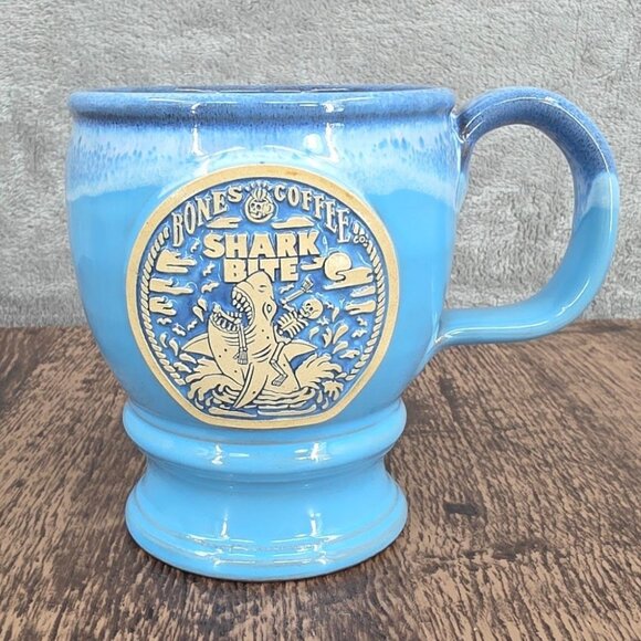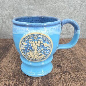 Bones Coffee Company Shark Bite Mug Blue Handmade USA Deneen Pottery 2021 Rare