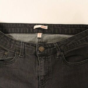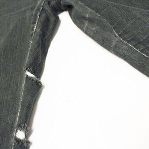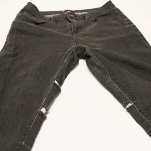 Size 9 black faded skinny jeans, with slits cut in the inner thighs.