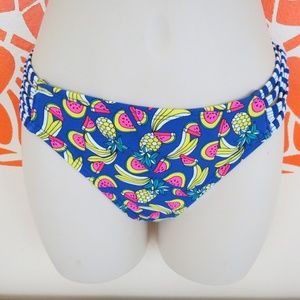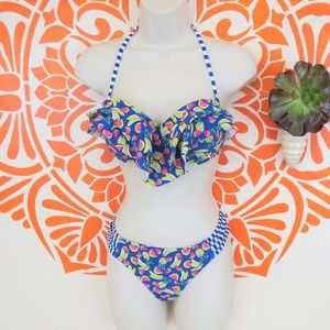 Bongo Blue Tropical Fruit Ruffled Bikini M