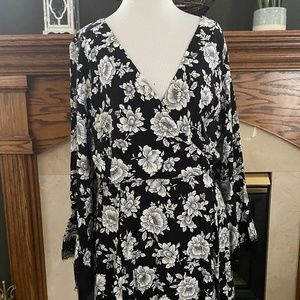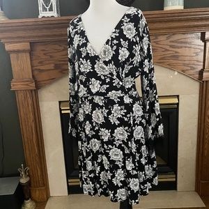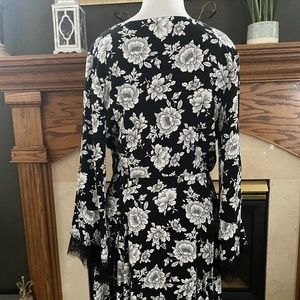 Super cute and playful dress with bell sleeves trimmed out in lace