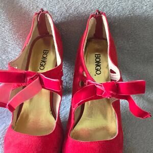 Bongo Elyse Red Suede Bow Cutout Heels Womens 8.5M Platform Pump