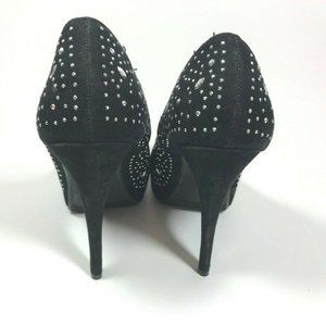 Bongo Fame sz 6 stiletto metallic studs black sued