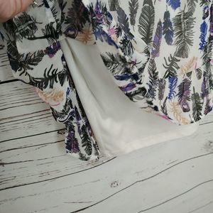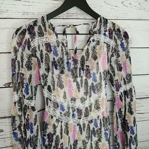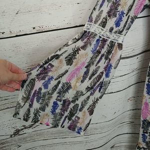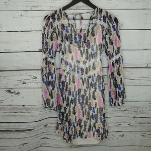 Gently used Bongo dress. Sheer top layer with feather pattern. Lined. Size small. Approx 15 1/2 inches pit to pit