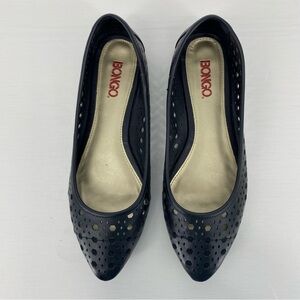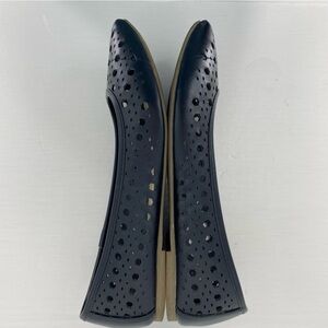 Bongo Frenzy circle laser cut black pointed toe ballet flats, 8.5M