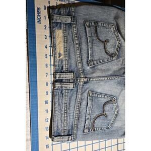 Bongo Jeans Distressed 3 Low Rise Flare Leg Embroidered Pockets Vintage 28x29"