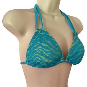 New without tags Bongo String bikini top, turquoise blue lace with greenish yellow underneath, removable pads