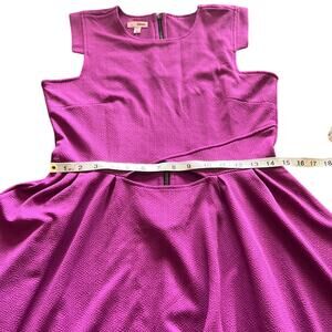 Magenta textured knit dress with fit n flare style, cutout at waist and exposed back zipper