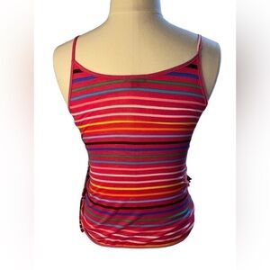 Stripped, zipper front top from Bongo. Size l, spaghetti straps, 95% cotton and 5% spandex. See pics for approximate measurements
