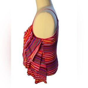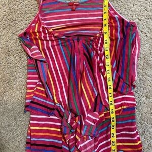 Stripped, zipper front top from Bongo. Size l, spaghetti straps, 95% cotton and 5% spandex. See pics for approximate measurements