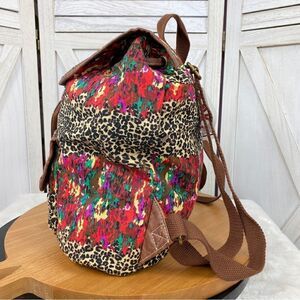 Bongo Leopard Print Multicolor Canvas Backpack Brown Multi