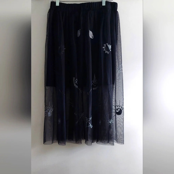 Bongo Midi Skirt Black embroidered Planets Stars Punk Whimsigoth Fairy Grunge