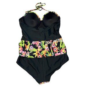 Bongo One Piece Swimsuit Tropical Neon Retro Underwire Boning Ruffle Waist Large
