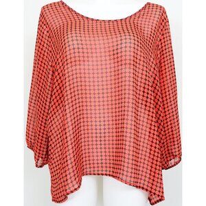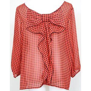 Bongo Plus 3X Red Black Dots Back Bow Sheer Blouse Office Travel Artsy Top
