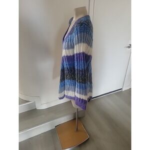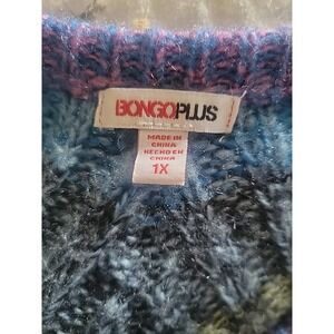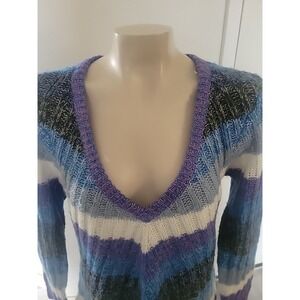 Bongo Plus Sweater Woman's Size 1X Multicolor V-Neck Blue Purple Gray Striped