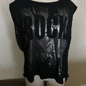 Great preloved condition, see through opened back, silver tone under The ROCK letters, sleeveless top.