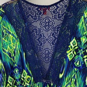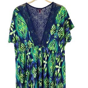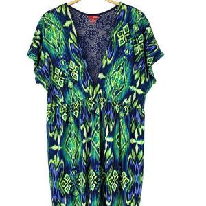 Bongo Size 1X Plus Jr Maxi Dress Tribal Athnic Print Vneck Plunge Short Sleeve 4