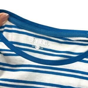 Bongo Blue and White Striped Crop Top Small NWOT Y2K Preppy Retro. This darling top features a blue ringer neckline, double blue stripes, front patch pocket, and a scrumptiously soft cotton/modal blend (60/40). Great with high waisted jeans or your favorite white denim shorts. See photos for measurements.