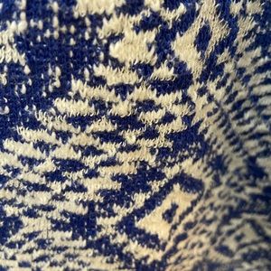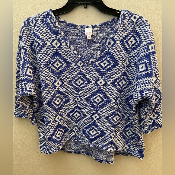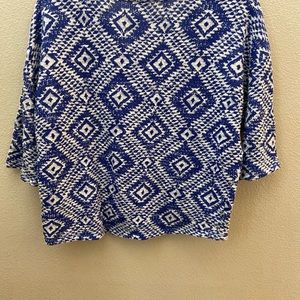 Slightly cropped in front, knit quarter sleeve size large. Excellent condition.