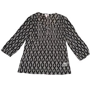 -Black and White Pattern with Black Beaded Neckline.