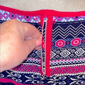 Elevate your style with this Bongo Trendy Hot Pink & Black Bohemian Patterned Women's elastic bottom Top. Sheer arms Sz XL. Perfect for casual outings, this top combines comfort and fashion effortlessly. Euc. Smoke free home