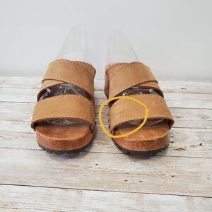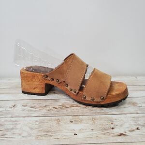 Bongo Vintage 90s y2k Wood Platform Stud Clog Slip On Slide Sandal Boho Size 6
