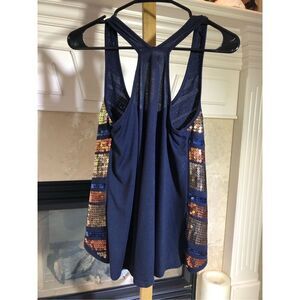 Bongo Women’s Navy Blue With Sequin Stripes Tank Top Size M Preowned in excellent condition