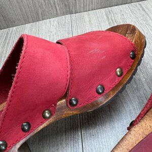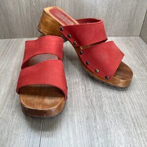 Bongo Wooden Platform Clog Sandal Size 9 Slip On Block Heel Open Toe Leather Red