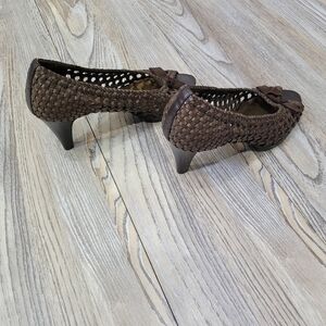 Bongo Woven Leather Heels Size 6.5 Brown