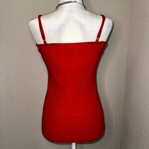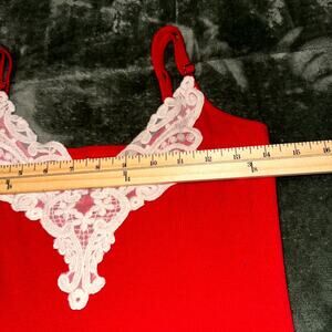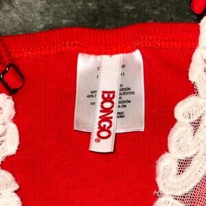 Bongo Cami Tank Top Women Large Red Cotton Ribbed Knit Lace Neck Spaghetti Strap.