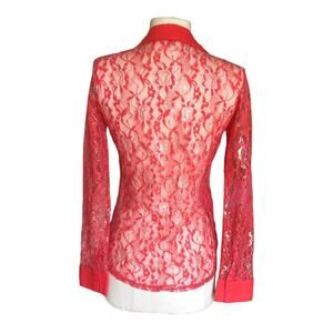 Bongo Y2K Flair Coral Lace Subtle Silver Metallic Collar Button-Up Shirt Medium