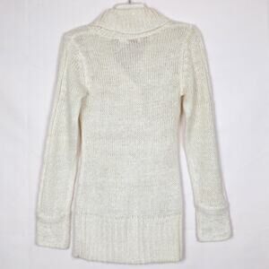Bongo Y2K pullover knit sweater in cream. Collared. V-neck. Long sleeves. Buttoned chest. Pre-loved condition. Worn only once. No stains, tears or holes.