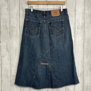 Bongo Y2k Style Button Accent Denim Straight Pencil Artsy Jean Midi Skirt 30