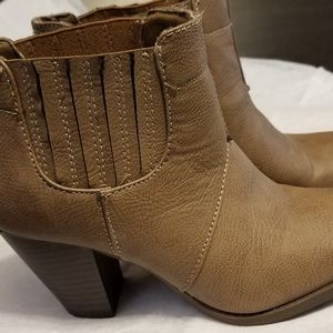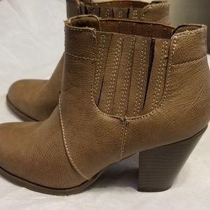 Never worn. Slightly spandex/flexible at ankle. EUC. Characterized as brown, closer to tan look. White stitching.