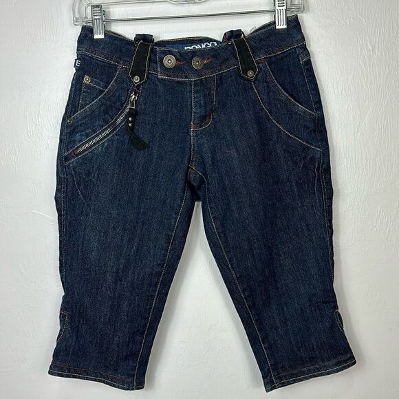 Bongo Dark Wash Cotton Blend Denim Suspender Capris Size 8F