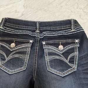 Bongo vintage Dark Wash Bootcut Jeans Contrast Stitching Back Flap Pockets Sz 9