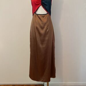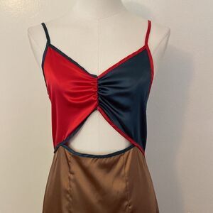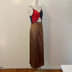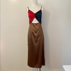 Bonheur D'amour Satin Colorblock Midi Dress Size Small