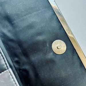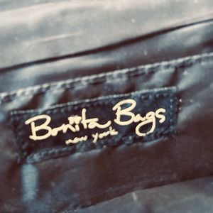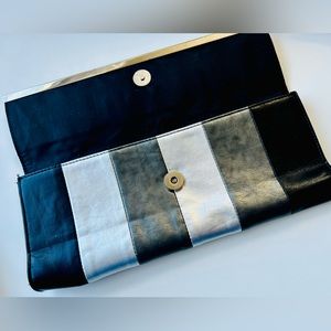 Bonita Bags New York Women's leather Metallic Color Block Clutch Handbag Snap Closure Super cute bag that folds over and snaps close.Metallic color block black, charcoal, and silver. Great to pair with a cocktail dress or a night out with the girls. Smoke Free Home 5"X11" interior liner is black