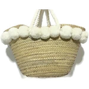 Bonita Moroccan Beach Market Bag With Large Pom-Poms Love Motif 18x10x10