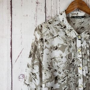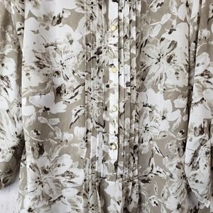 Bonmarche Henley Tunic Blouse Womens Size 16 Floral Sheer Roll Tab Sleeves