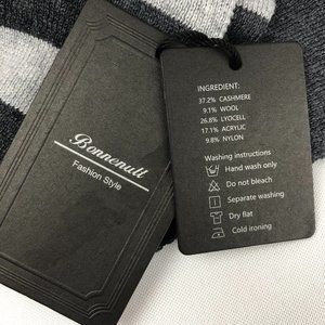 Bonnenult Fashion Mens Cashmere Wool Blend Black & Grey Scarf. Measures approx. 36" long x 12" wide. New with the tags.