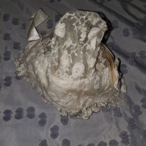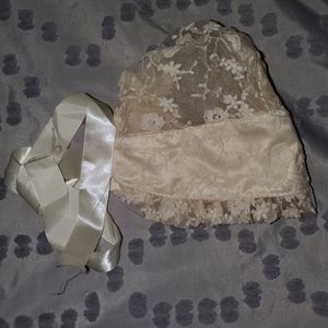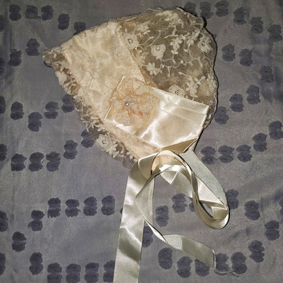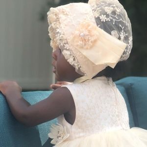 Champagne color laced bonnet is a beautiful accessory.