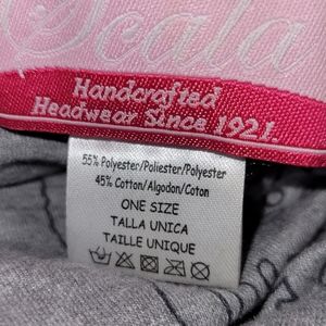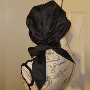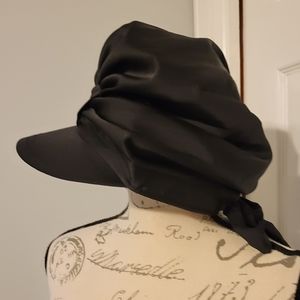 This bonnet cap has a satiny look, a wide bill, a bow in the back and a grey and black liner. Unfortunately, it's a little too small, so I never got to wear it. New. Never worn.
