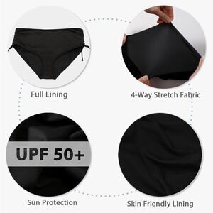 Black swim bottoms with UPF 50+. Features full lining and 4-way stretch fabric. Sun protection and skin-friendly lining.