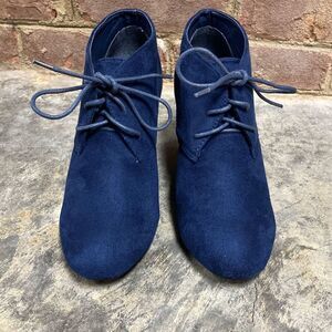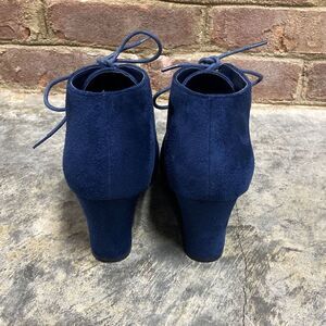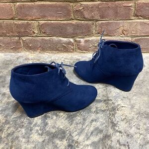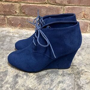 Bonnibel Navy Faux Suede Lace Up Wedge Bootie Size 6.5