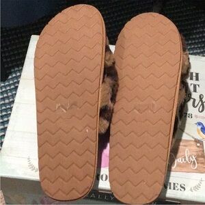 Bonnibel size 10 super soft and fluffy cheetah print crossover slippers in box NWT