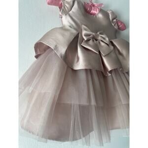 Bonnie Baby Baby Girls Short Sleeved Mikado Tiered Dress with Bow Sz 18M