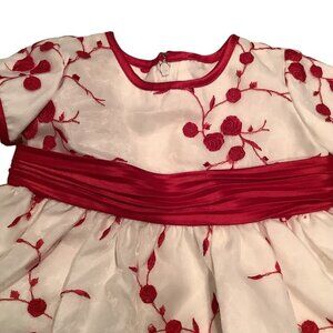 Bonnie Baby Dress White & Red Floral Embroidered Bow Back Size 3/6M